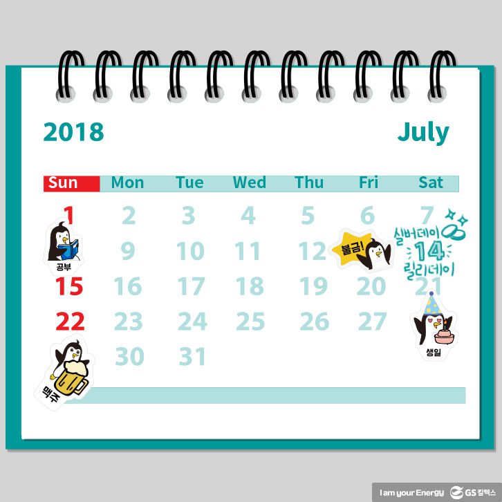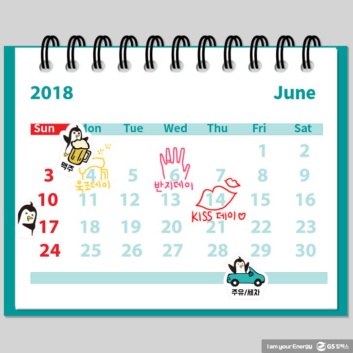 매달 14일마다 있는 기념일, 생소하지만 귀여운 기념일, 그리고 GS칼텍스에게 특별한 날들 모두 2018년 달력에 담아보았어요 🙂