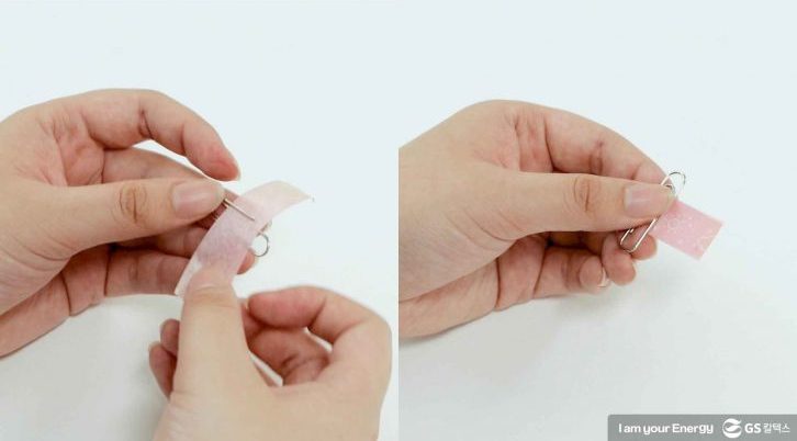 만약 클립이 없다면 마테만 조금 떼어내 반을 접어 붙여주면 된답니다.
