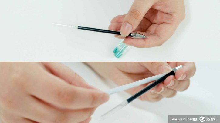 펜의 심지를 꺼내서 원하는 마테를 붙여줘요. 다시 심지를 넣어주면 나만의 볼펜이 완성!