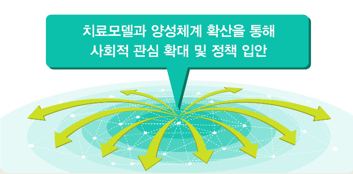 이렇게 국내 예술치료의 한계에 부딪힌 저희는 일을 좀 크게 벌이기로 작전을 짰습니다. 예술치료계 전반이 업그레이드돼야만 어린이들이 효과적인 심리치료를 받을 수 있겠다는 확신 때문이었습니다. 그래서 지금껏 개별적으로 진행돼온 예술치료를 통합하는 모델을 개발하고, 치료사들을 양성하고, 이 치료사들이 치료모델을 활용해서 사회복지기관의 치료센터에서 아이들을 치유하는 구조를 만들겠다는 포부와 꿈을 품었고, 하나하나 현실로 만들어가고 있습니다.