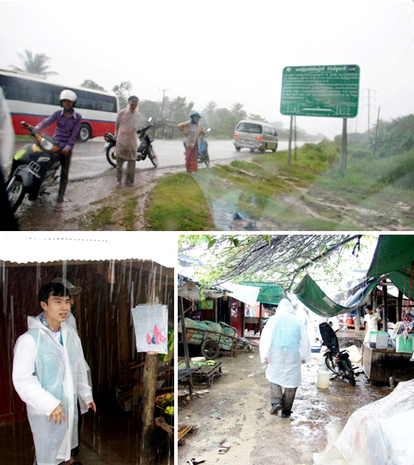 드디어 제가 결연을 맺은 가정을 찾아갈 시간이 되었습니다. 저랑 인연을 맺을 친구들이 누구일지 설레는 마음에 캄보디아어도 열심히 외우고 공부 했답니다 좋은 첫 인상을 주기 위해서죠^^ 그런데 역시나 예상치 못한 일이 일어났어요. 오전에 그렇게 맑았던 하늘이 갑자기 천둥벼락이 치더니 우기답게 비가 억수로 비가오기 시작했습니다. 얼마 전까지 우리나라에서 왔던 그런 비보다 더 세찬 비가 내립니다. 아이들이 기다리고 있을 것을 생각하니 마음이 급해졌지만 역시 현지인들은 활짝 웃으며, 비를 즐기더군요. 급하게 갈 필요 없이 자연의 섭리에 따르고자 하는 생각이 보입니다. 그리고 한 시간이 넘도록 계속 비가 오자 일단 출발하기로 하고 역시나 사진에 있는 열악한 시장에서 장을 보고 아이들 집으로 출발합니다.