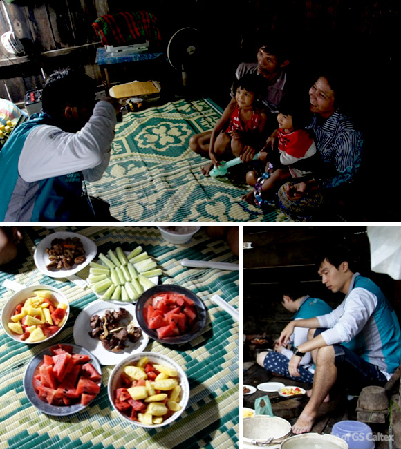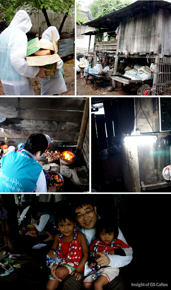 트럭에 탄 채로 비바람을 헤치며 목적지에 도착했죠! 차에서 내려 다시 요리조리 길이라고는 볼 수 없는 통로를 지나 드!디!어! 사진으로만 보았던 결연가정의 아이들의 환한 미소를 만날 수 있었습니다. 어때요? 너무 사랑스럽지 않나요? 하지만 열악한 환경의 집이 맘에 걸렸습니다. 전기도 배터리로 거의 하나만 켤 수 있어 호롱불이 떠오르는 그런 집이죠. 하지만 불평 하나 없는 아이들의 모습에서 오히려 제가 더 많은 것을 배울 수 있었습니다. 역시 봉사는 가르치는 것이 아니라 배움이다라는 것을 한번 더 깨달았고, 가진 것에 만족하고 사소함에서 행복을 얻는 생각을 잊지 않으리라 다짐했습니다.
