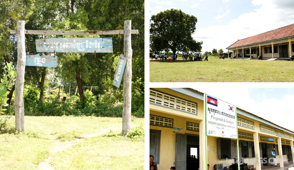 경운기의 덜컹거림과 광활한 자연의 부조화가 적응이 될 즈음 초등학교에 도착했습니다. 먼저 학교소개를 들었는데, 171명이나 되는 초등학생이 있다고 하더라고요. 주변에 집이 없는데 어디서 그렇게 많이 오냐고 물었더니 초등학교가 별로 없어 어린아이들이 수킬로미터의 어마어마한 거리를 걸어서 온다고 합니다. 저희가 자동차 타고 경운기 타고 해서 겨우겨우 수십분 걸리는 길을요… 본격적으로 학교 소개를 들었습니다. 이 학교를 우리 회사가 후원을 하고 있다고 합니다. 간판에 우리회사 CI가 정확하게 들어있어요. ㅎㅎ 신기하더군요. 이 농촌 속의 농촌, 길 속의 길 속에 우리회사 CI가 박혀있다니^^ 그리고 교실에 들어갔습니다.