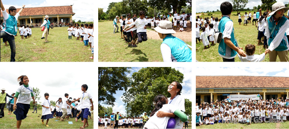 이번에는 운동회! 우리나라 어린이들이 즐겨 하는 ‘둥글게둥글게’, ‘2인3각’, ‘종이 뒤집기’, ‘단체줄넘기’ 등등 다양한 종목을 준비했어요. 하지만 처음 해보는 어린이들에게는 어려울 수밖에요. 먼저, ‘개구리 뒷다리’로 준비운동을 신명나게 한 뒤, 본격적인 놀이에 들어갑니다. 역시나 어린이들의 머릿속 센서는 세계 공통인가 봅니다. 바로 알아듣고 깔깔깔깔 좋아 죽겠다며, 놀이를 함께 합니다.^^ 다들 너무 예쁘지 않으세요? 운동회 단체 사진을 찍고 다시 경운기에 트럭에 봉고를 타고 오는 내내 가슴이 따뜻했답니다. 자기 전에도 생각날 것 같아요. 저한테 꼭 붙어서 그림 그리던 그 아이가요.