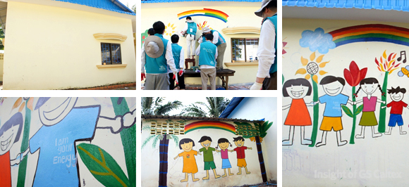어린이들의 엔돌핀에서 미쳐 헤어나지 못한 채로, 뱅몽 어린이집에 벽화를 그립니다. 일정이 약간 빡세지만! 꼰뜨레이의 어린이들이 이럴 줄 알고 미소로 힘을 주었나 봅니다. 모두가 구슬땀 또 다시 흘리며, 벽화를 완성합니다.