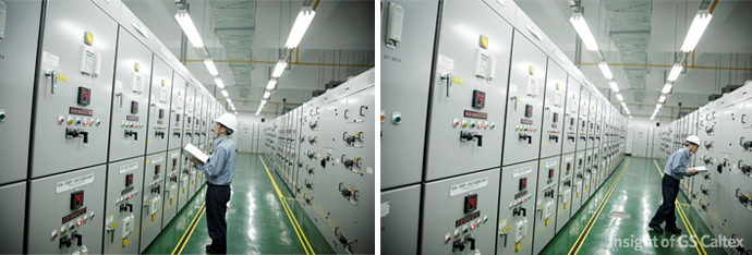 GS칼텍스 여수공장은 약 6백만제곱미터로 여의도 면적에 육박합니다. 이러한 광활한 공간을 가득히 차지하는 각 공정들을 돌리기 위해서는 엄청난 양의 전기가 필요하죠. 그리고 국가 에너지를 책임진다는 사명감으로 24시간 쉬지 않고 운행되기 때문에 실제 전기 사용량은 엄청나며, 필수적인 요소입니다. 그래서 더욱 에너지효율에 앞장서서 연구하고 개선하는 작업을 매일 같이 하고 있습니다.