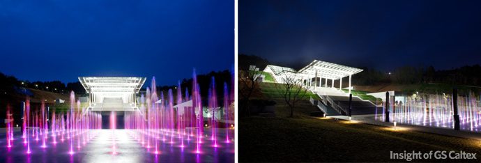 특히 야간에는 분수에 탑재된 LED 전구 시스템을 통하여 아름다운 분위기를 연출하게 되니 밤에 보시면 더 환상적입니다.