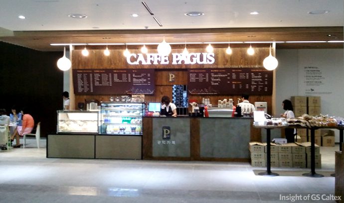 바로 이곳인데요. 4층 대극장 로비에 CAFFE PAGUS 가 입점하여 있는데 국제구호개발 NGO 월드휴먼브릿지가 운영중인 공익 카페 체인으로 미혼모 가정과 장애인 등에 일자리를 제공해서 경제적 자립을 지원하게 된답니다.