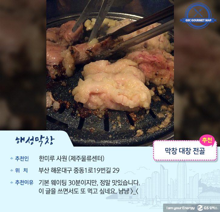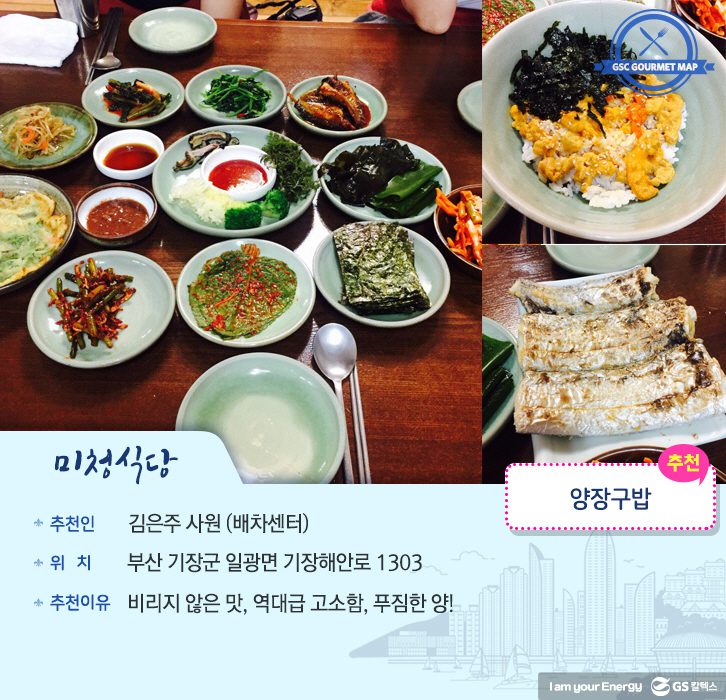 맛과 양까지 모두 다 잡을 수 있는 임직원 추천 부산 맛집 정보, 많은 도움이 되셨나요? 차곡차곡 쌓여가는 맛집 정보가 임직원 여러분께 알찬 정보로 남을 수 있도록 GSC 맛집 지도는 앞으로도 다양한 지역을 탐색하겠습니다. 많은 기대 부탁드립니다^^