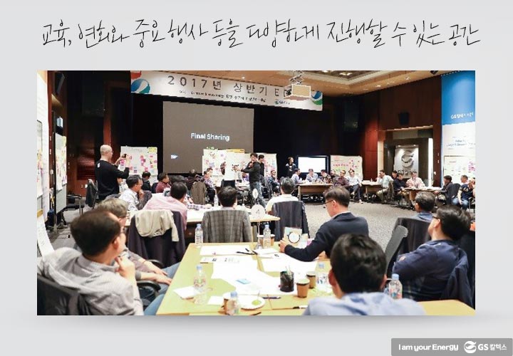 대강당은 교육, 연회와 중요 행사 등을 다양하게 진행할 수 있는 공간으로 설계됐다. 분임토의실은 회사의 조직가치에서 이름을 따온 신뢰, 유연, 도전, 탁월, 선제행동, 성과창출이란 이름의 6개실을 갖추고 있다.