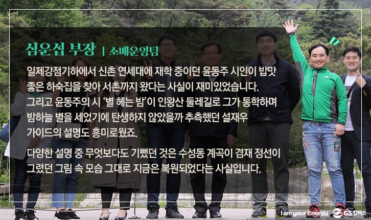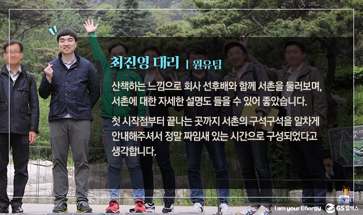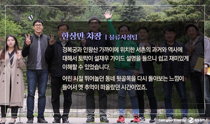 서촌의 골목길은 빨리 지나간다면 그 속에 담긴 이야기를 볼 수 없는 곳입니다. 발걸음의 속도를 천천히 늦춰야 그 속에 담긴 고즈넉한 이야기를 즐길 수 있는 곳입니다. 따뜻한 5월 중순, 서촌 골목길을 천천히 걸으며 다양한 이야기를 들었던 임직원들은 어떤 추억을 쌓았을까요?