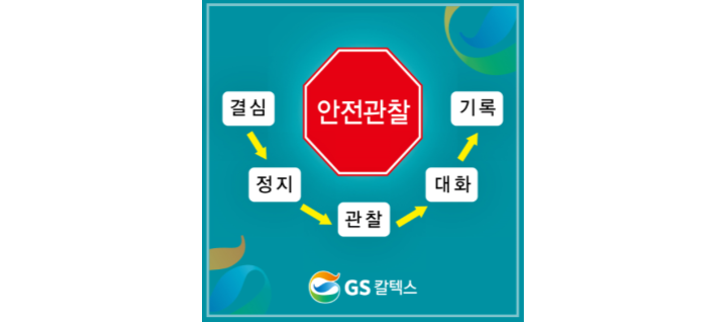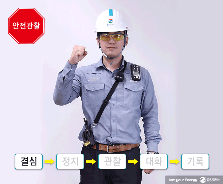 안전관찰은 회사 모든 사업장에서 임원부터 막내 직원까지 모두가 실천하고 있는 안전문화 개선 활동입니다. 이것은 회사 생활을 하면서 누구나 눈에 보이는 좋은 모습은 칭찬하고, 불안전한 행동과 상태는 담당자가 스스로 이해하고 개선할 수 있도록 대화로 유도해 나가는 활동입니다.