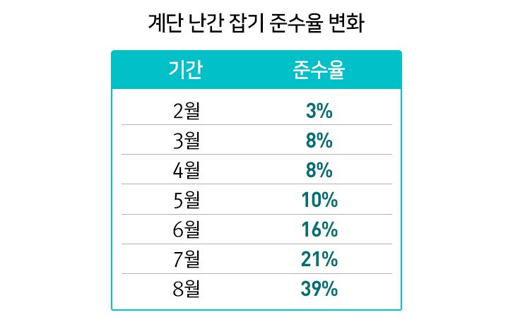 계단 난간 잡기는 아주 사소해 보이지만 가장 기본이 되는 구성원 간 약속입니다. 즉, 난간 잡기 준수율 상승은 사업장 내 안전 수준이 높아짐을 나타내고, 그만큼 임직원 모두가 안전한 사업장을 만들어 가고 있다는 것을 말해주는 것이죠. 이번 기회를 통해 계단 난간 잡기가 하나의 안전 습관이 될 수 있도록 임직원 모두 ‘나부터 지키겠다’는 다짐을 해보면 좋겠습니다.