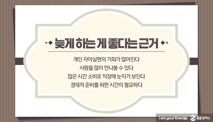 직장인들이 취업을 하면서 생각했던 결혼의 ‘적령기’도 있었을 것입니다. 그 때에 맞춰서 결혼을 한 이도 있고, 아직 못한 이, 그리고 안 한 이들도 있습니다. 결혼을 한 직장인들 중에는 일에 도움이 되는 이들도, 그렇지 않은 이들도 있겠죠? 그 중 결혼에 가장 관심이 많을법한 직급들을 불러 모아 결혼에 관해 이야기 나누어 보았습니다. 결혼 적령기에 있는 GS칼텍스 대리 4인방이 나눈 이야기가 궁금합니다.